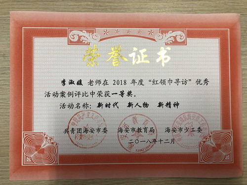 李淑媛参加“红领巾寻访强军梦”“红领巾寻访新时代”活动案例评比获一等奖