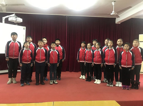 25日第二节课,在左竹青老师的组织下,校歌、国歌、队歌比赛闪亮登场,激昂的歌声,向上的激情,弥漫了整个小礼堂。