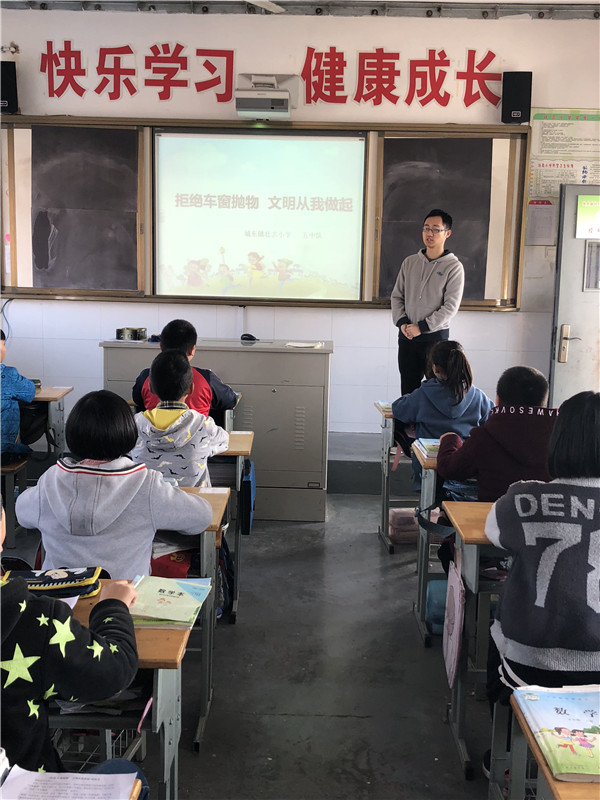 为了响应这一号召,城东镇壮志小学创文工作组立即召开了以此为主题的教师会并制定了《壮志小学“拒绝车场抛物,文明从我做起”活动方案》。与此同时,创文工作组成员还编写了“拒绝车窗抛物,文明从我做起”倡议书。11月13日,各班班主任利用晨会时间向全体学生宣传并解读倡议书内容,以小手拉大手的方式,告知、劝导、督促家长、亲戚和朋友们做到文明行车、文明乘车,在生活中发现车窗抛物等不文明行为,敢于制止,劝导市民改变不良习惯,争做文明海安人。